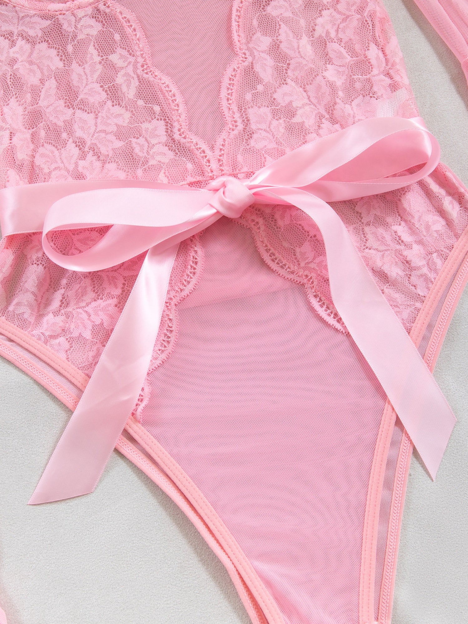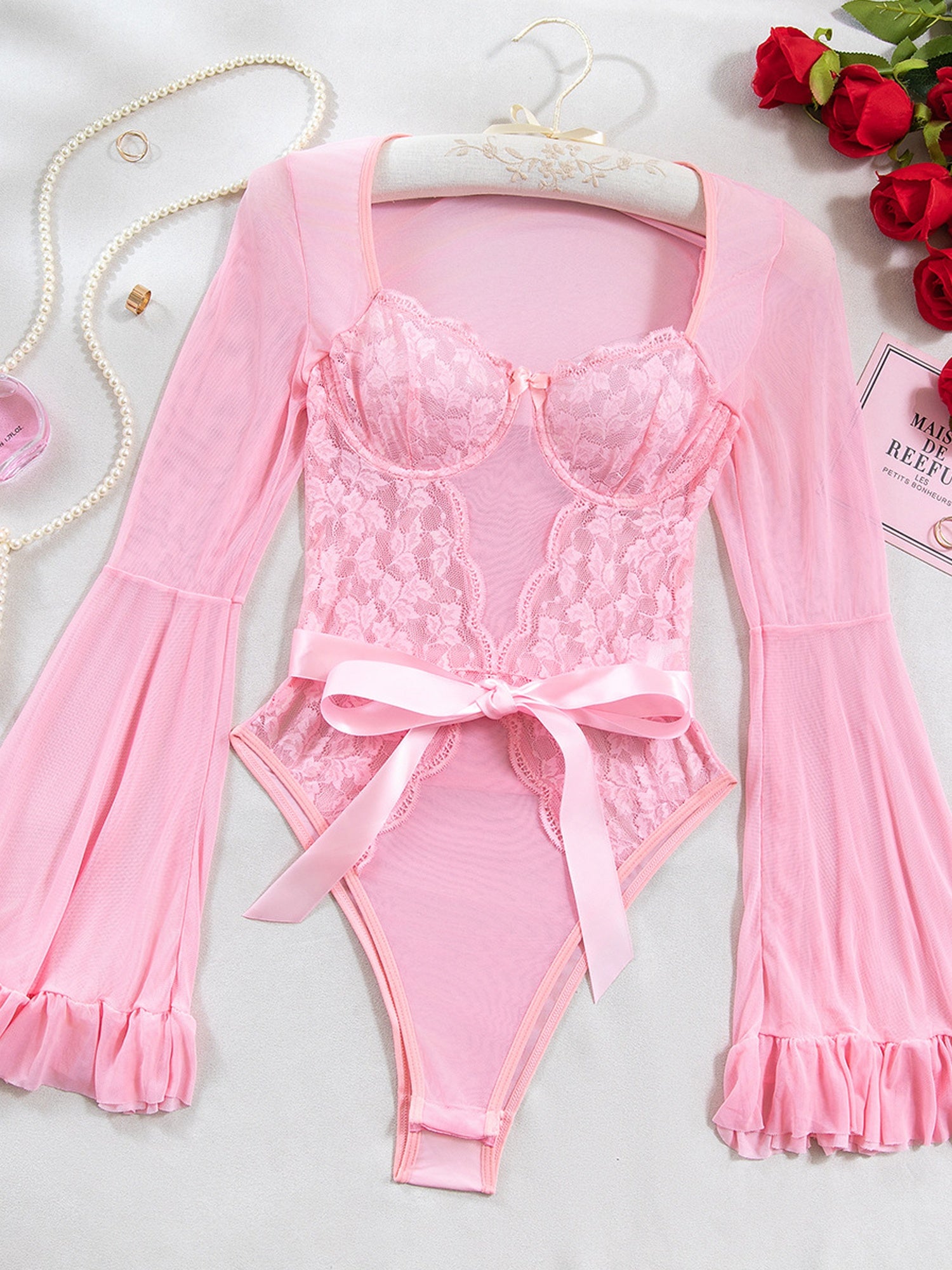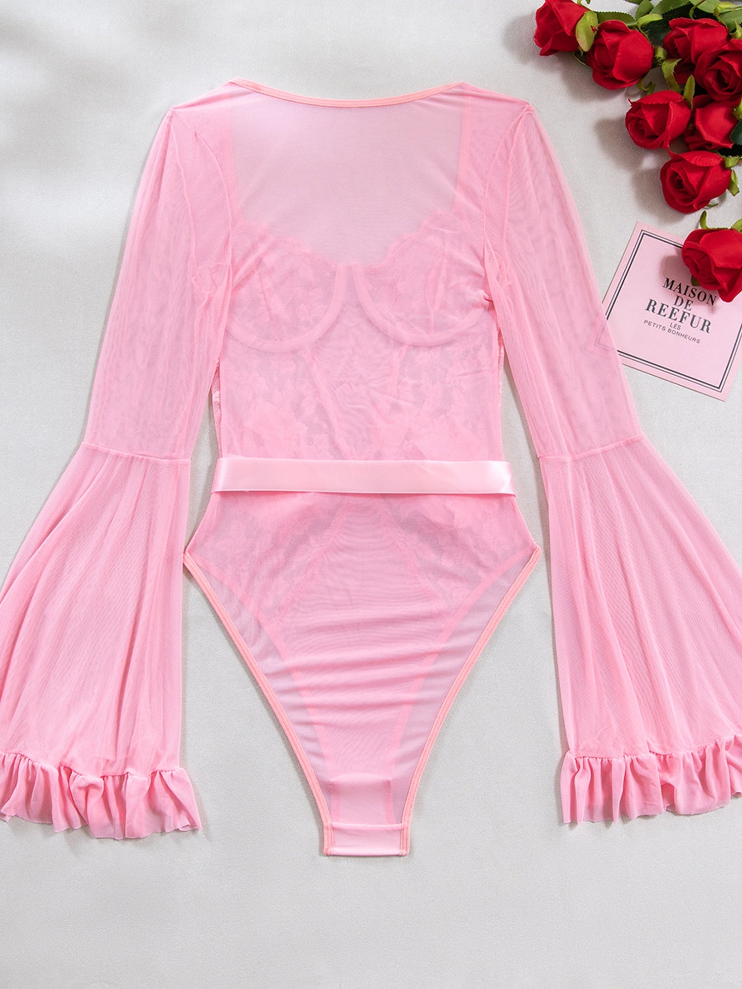 Pink Cut Out Flare Sleeves One Piece Bodysuir