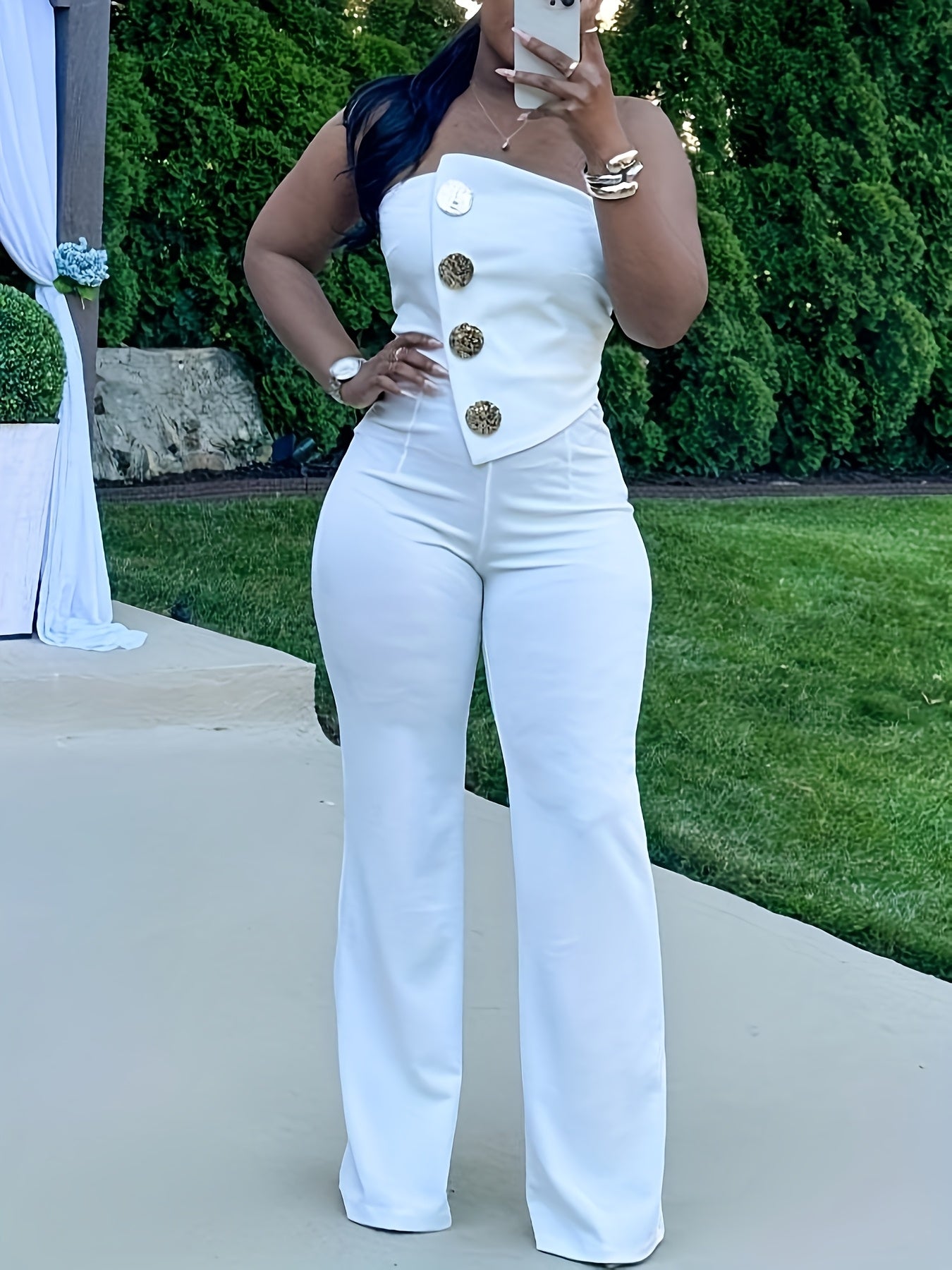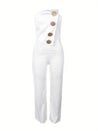 Button Print Sleeveless Strapless Bodycon Jumpsuit