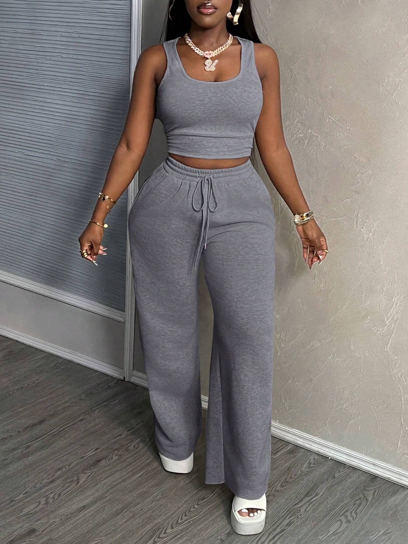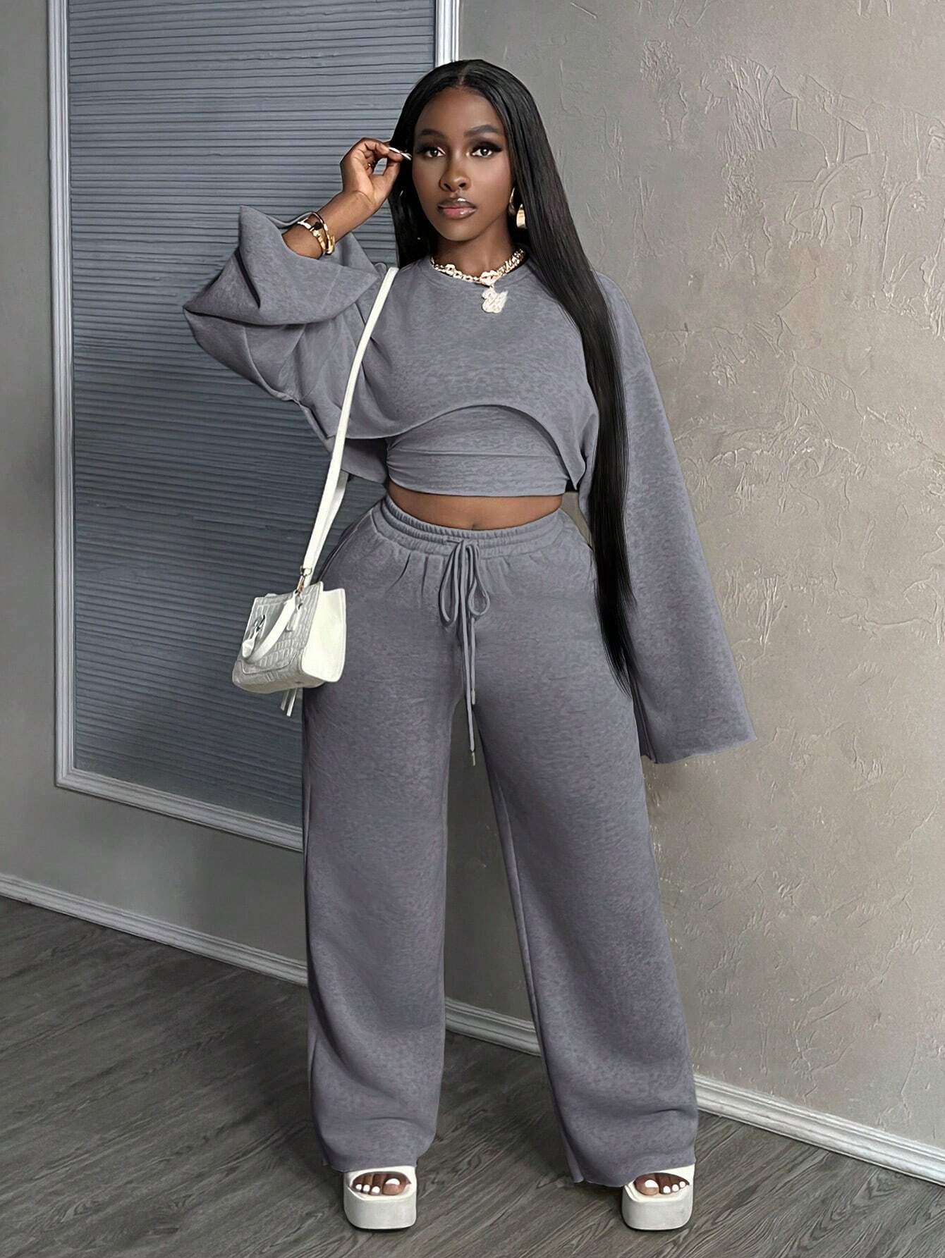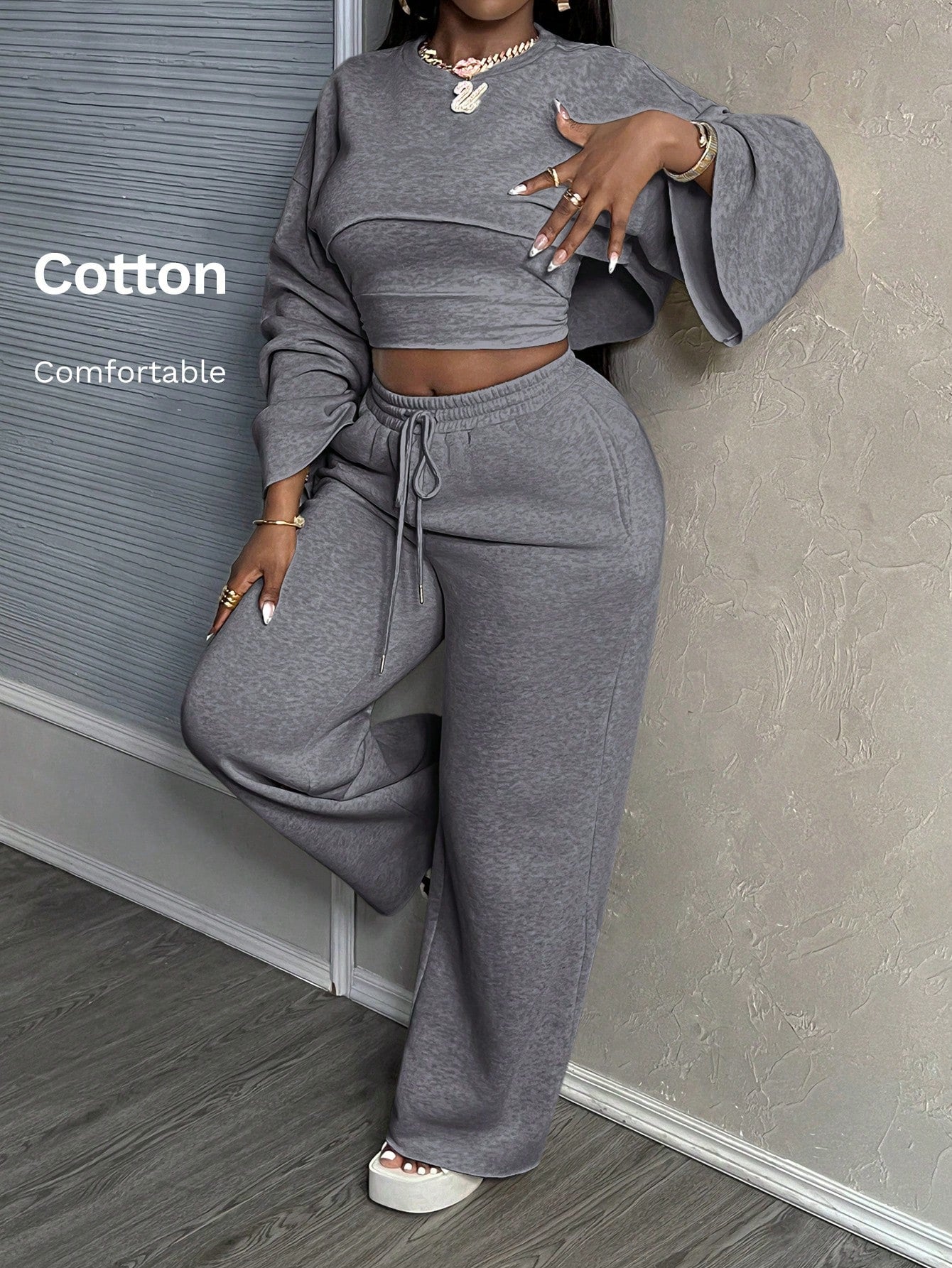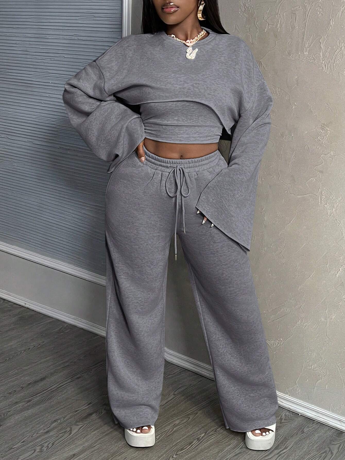 Long Sleeve Cropped Top, Cami, And Wide Leg Pants Set
